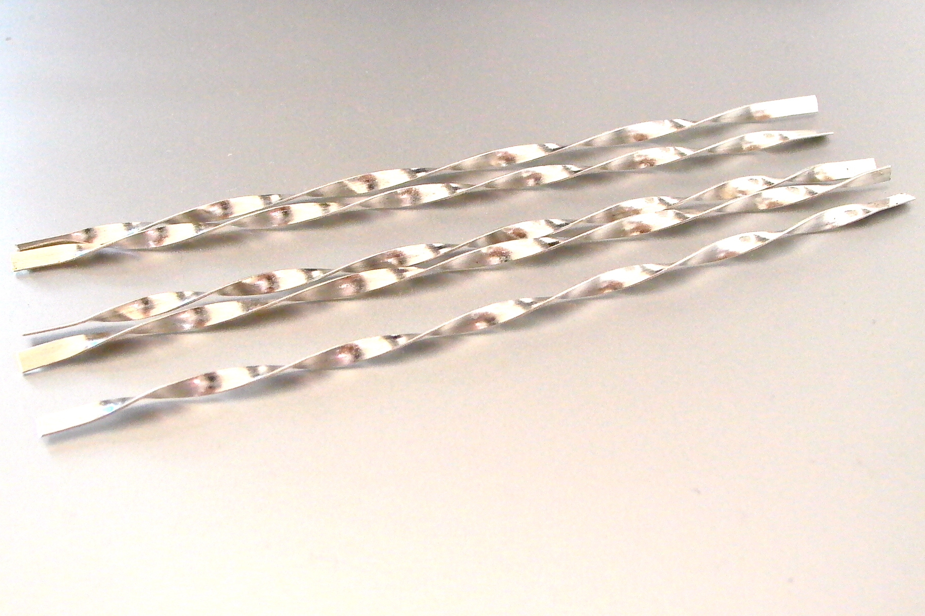 Utilizzando lastrine in Argento puro 999 certificate, abbiamo preparato delle spirali come nell’immagine qui sotto: circa 6 spire in una lunghezza di circa 11 cm.